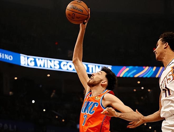 本场比赛,双方在首发阵容上面,雷霆这边派出的是,亚历山大,切特,杰威,华莱士,多尔特;太阳这边派出的是,狄龙,奥尼尔,吉莱斯皮,阿伦和马克威廉姆斯,布克因伤缺席。首节比赛开始,太阳率先拿到球权,但被华莱士抢断快攻,一条龙得手,打进本场比赛首个进球;马威暴跳腾空,蓄力扣篮也为太阳开张,亚历山大的急停中距离干拔稳稳命中,阿伦借助掩护的超远三分开火同样也有;狄龙沿着底线,反身上篮高难度命中,切特顶着防守的大号三分再进一球。很快,雷霆就完全占据了主动权,攻防两端都建立起了巨大的优势。