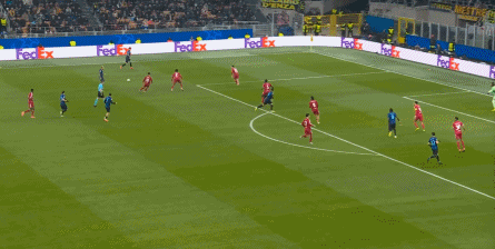齐沃在场边可能也看出了一些问题,加上先后因伤连换两人,势必影响到了下半场替补调整的计划之后,国际米兰的思路可能是在上半场末段尽力打出一些内容,所以在半场结束前,国际米兰的节奏大大加快,进攻手段也变得简单许多,所以形成了一些威胁: